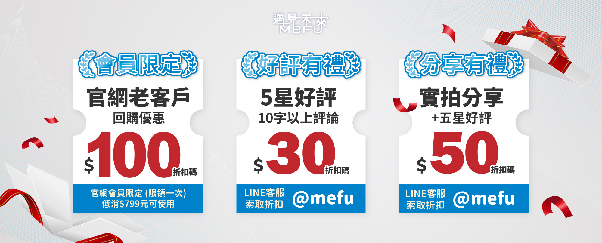 📸 五星好評 + 實拍分享: 領 $50 折扣碼