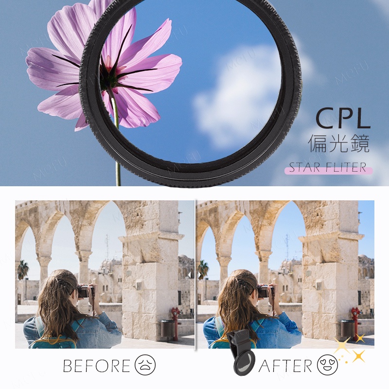 ❤️CPL偏光鏡(APL-HD5-CPL):消除非金屬表面無用 的反光,減少水波紋/讓天空更藍 。