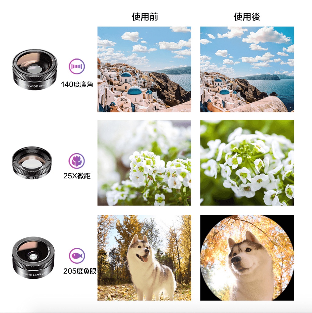 光學玻璃:廣角/微距/魚眼鏡頭