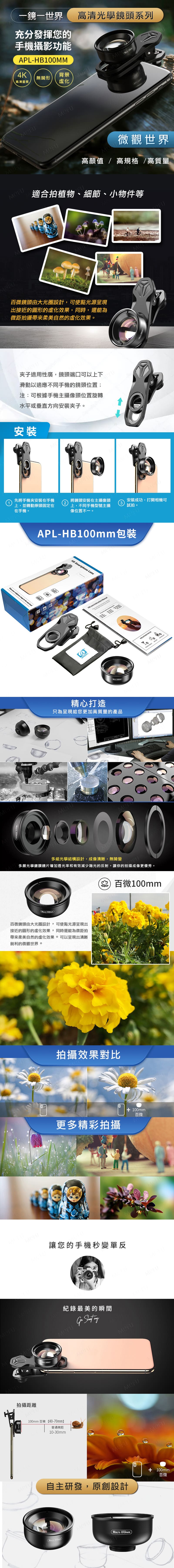1. 景深的光學設計,微距景深達到30mm~80mm,覆蓋現有手機鏡頭的攝影對焦盲區。
