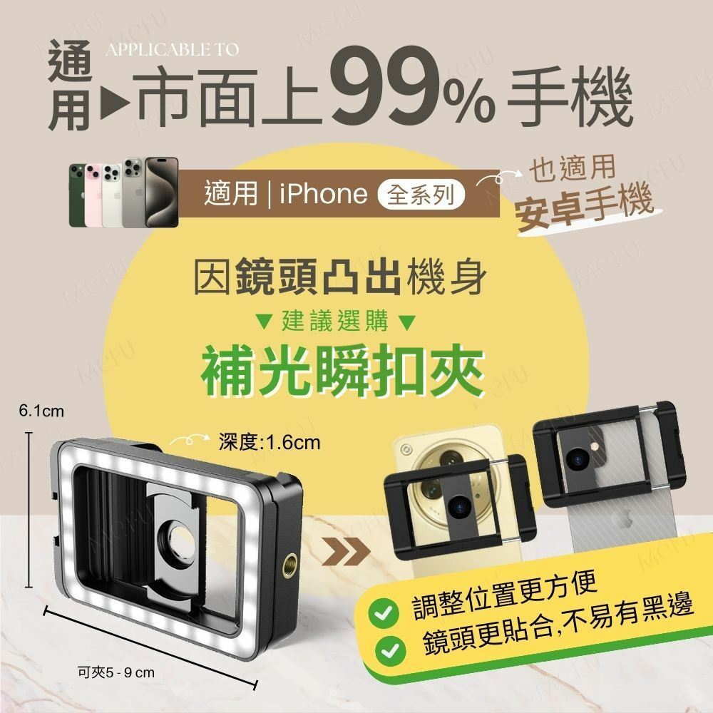 ⚠️注意⚠️若您的手機寬度小於7cm或主鏡頭位置偏高(如 iPhone 13 mini、iPhone 17 air 等)不適用37MM拉夾,建議加購「37mm夾式鏡頭夾」 。