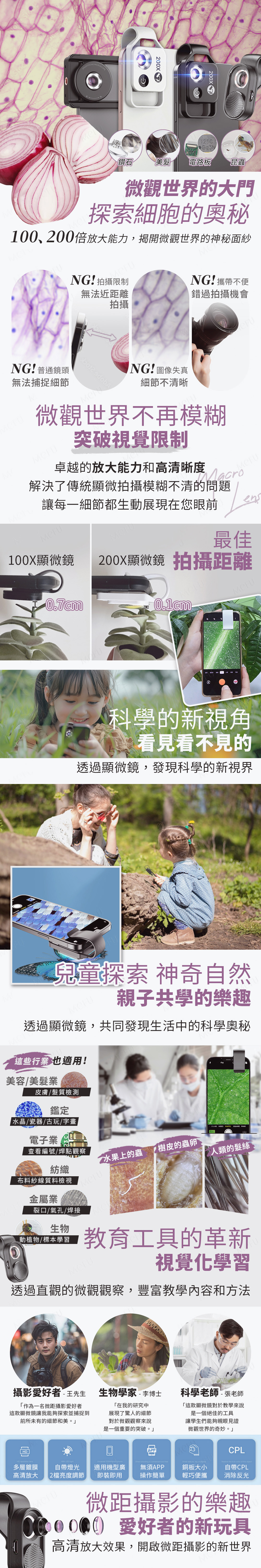 200X高倍率 / 適配各種手機 / 清晰度好 / 內建鋰電池
