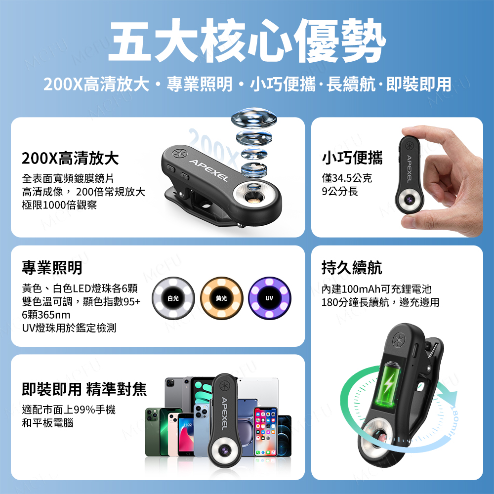 APEXEL 200X升級夾式顯微鏡(AX-MM200X)