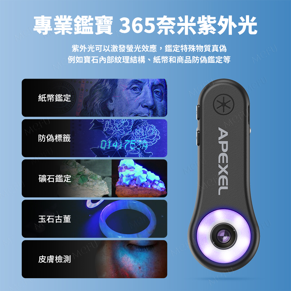 🔥 LED+UV紫外光,低光環境也能觀察,適合驗鈔、螢光檢測。