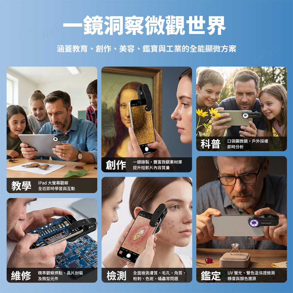 ※ 貼心提醒:本產品僅適用於「平面物體」緊貼觀察,貼得越近,畫面越清晰震撼!