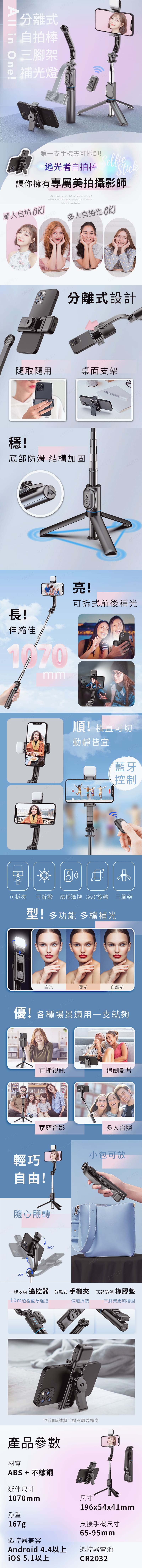 🔥拉身長度約1070mm,自拍/合照/直播 多種場景都適用