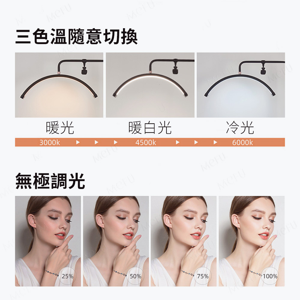 🔥半月形設計提供柔和均勻的光線,完美還原膚色,打造自然光影效果。