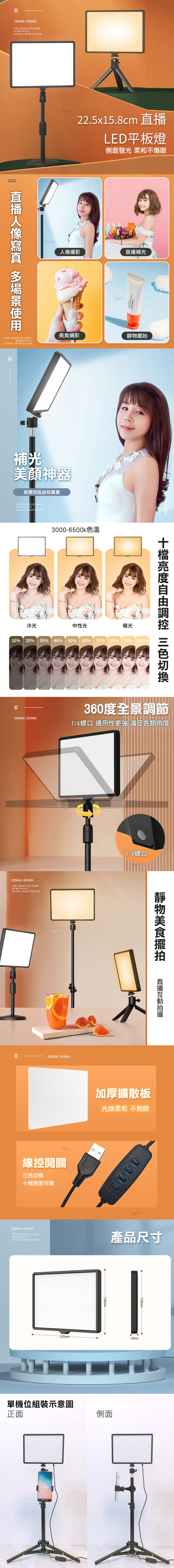 01. 平板燈(22.5x15.8cm) 含配件總重 513.3g