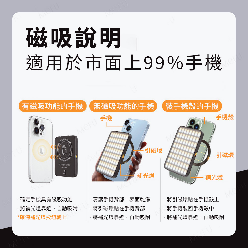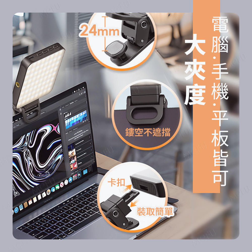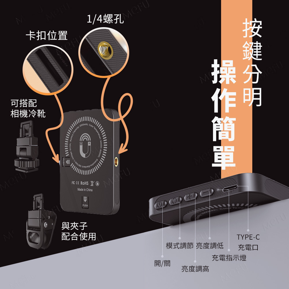 🔥磁吸+冷靴+夾子+1/4螺孔設計:方便快速安裝,能輕鬆吸附在手機、相機、筆電等設備上,隨時補光。
