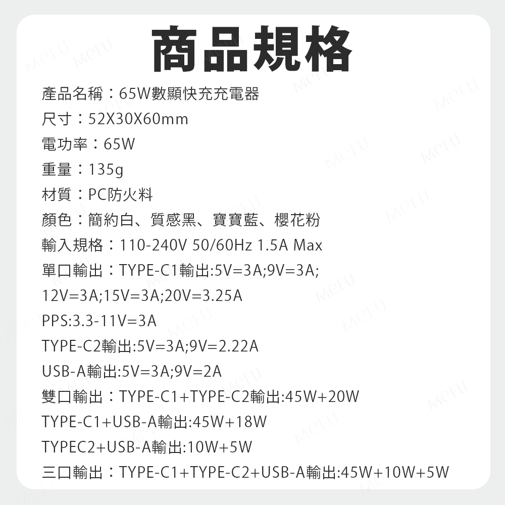MEFU 65W數顯快充充電器 (CY149)
