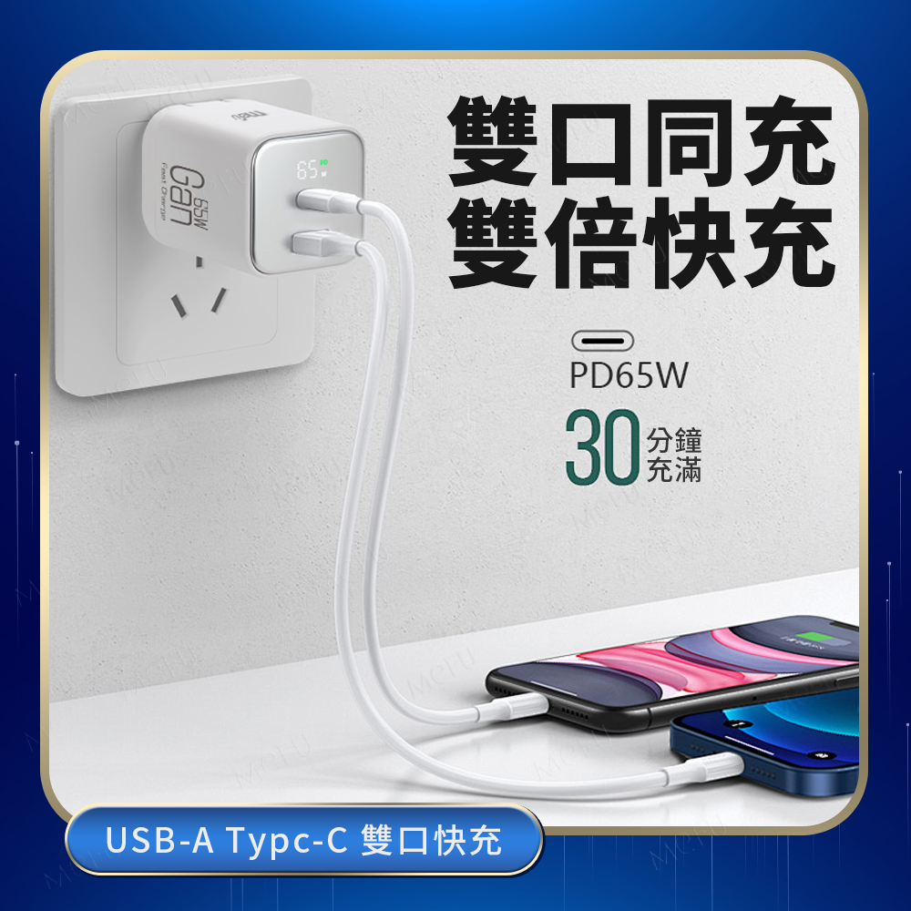 🔥雙孔快充丨TYPE-C + USB-A 雙孔設計,滿足多設備快充需求