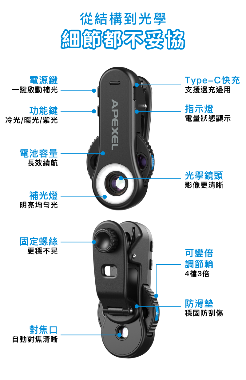 安裝鏡頭→轉倍率→拍細節。簡單直覺,零學習門檻。