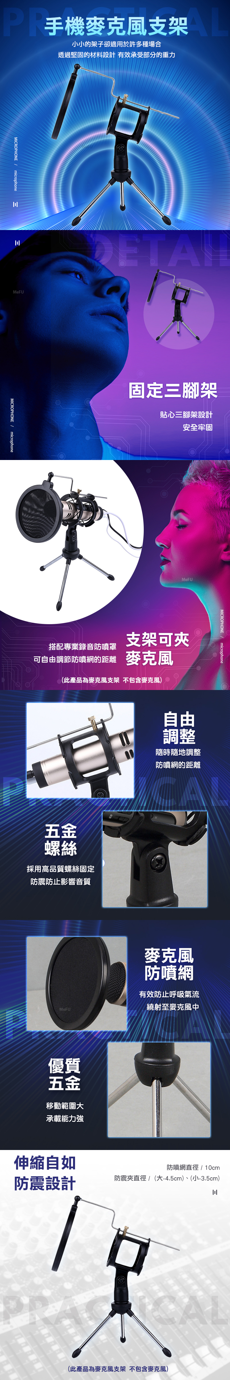小小的架子卻適用於許多種場合,從網路K歌、網路聊天、錄音棚、廣播電台、控制室、宣傳室等,架起它之後再配置麥克風,可在多種場景中方便的使用。