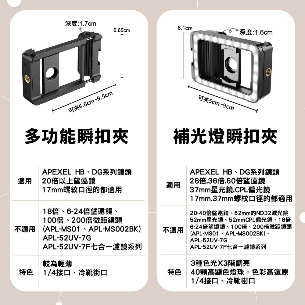 Q2:補光款瞬扣冷靴手機夾(APL-FL23) 適合那些鏡頭?