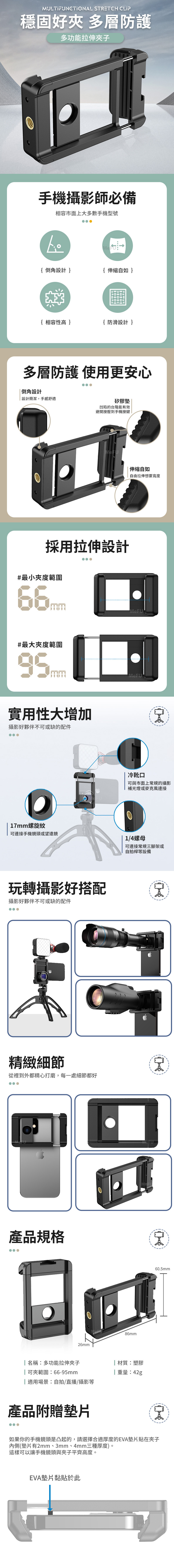 手機寬度適合6.6~9.5cm(拉伸範圍)