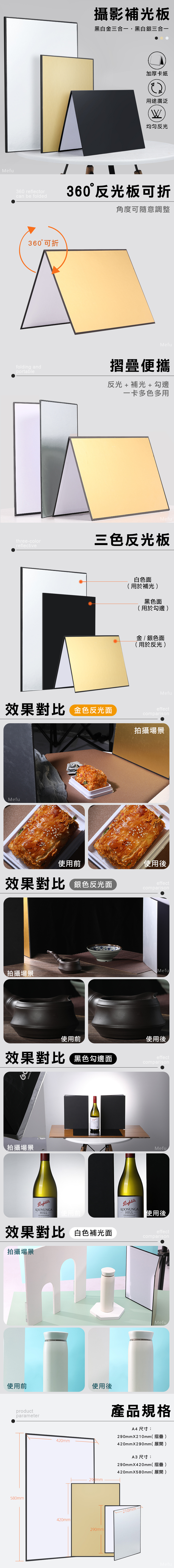 三合一攝影補光板,勾邊、反光、補光,一卡多色多用👍