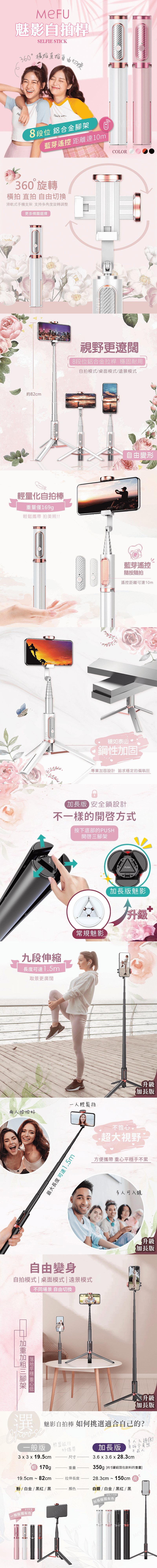 4、短款八段式伸縮調整,可拉伸長度達 82cm,收縮後長度僅 19.5cm,可放在口袋和包包,讓您走到哪拍到哪。