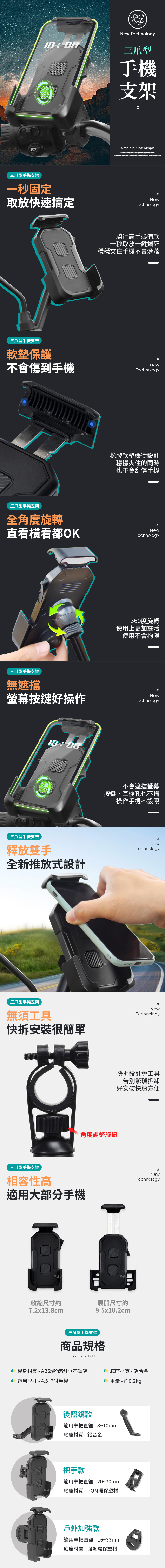 1、 全新推放式設計,可以輕鬆取放手機,方便您騎車也可單手操作。