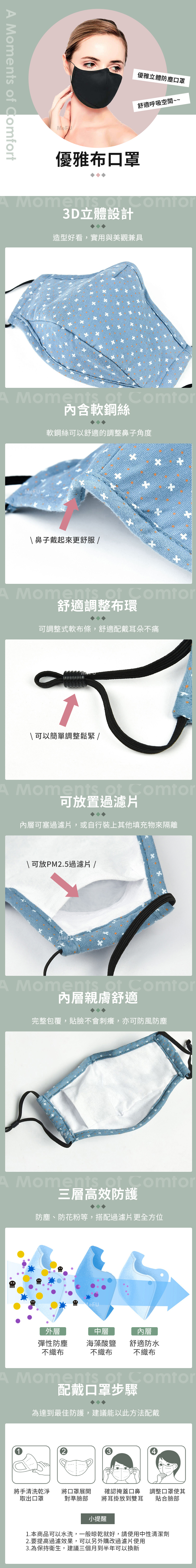 ✅棉質彈力耳帶,不壓耳,鼻樑部分,軟性金屬壓條,確保舒適貼合。
